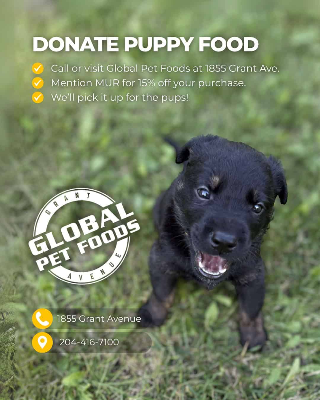 ✅ Purchase a bag from Global Pet Foods (call 204-416-7100 or visit 1855 Grant Ave).